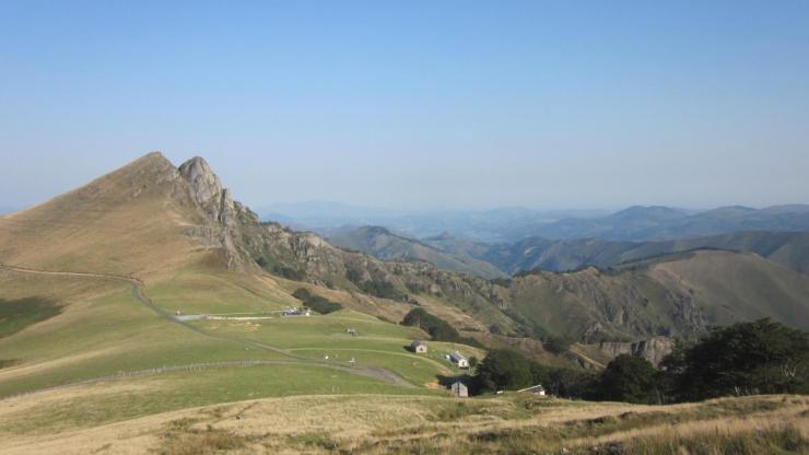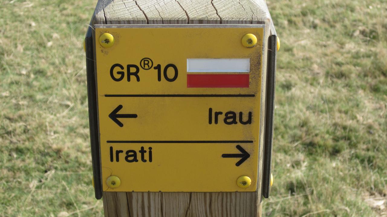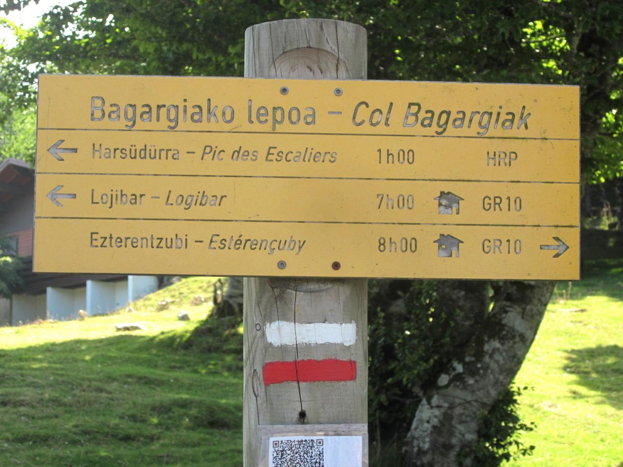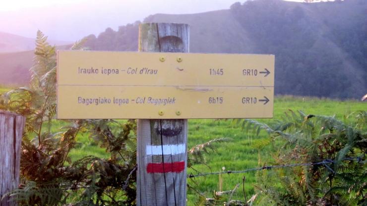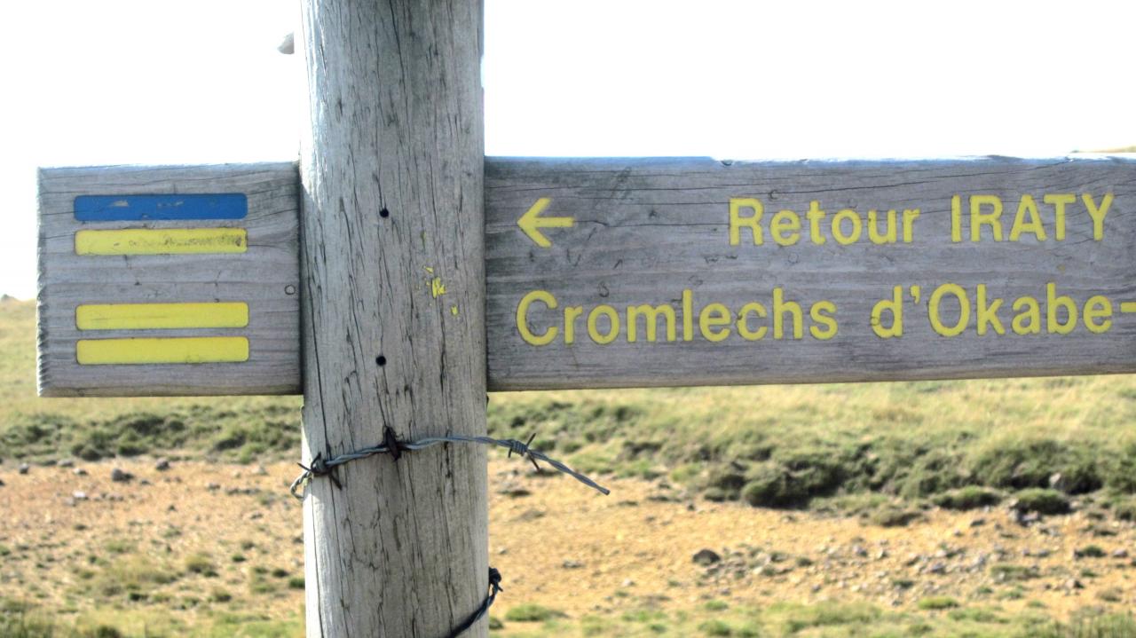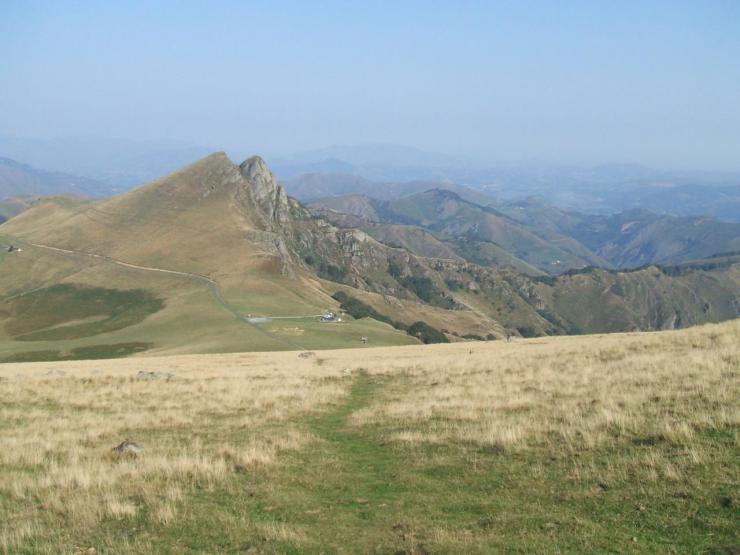 Remonter la piste sur la droite qui traverse au sud. Elle franchit plusieurs chainons sans trop prendre d'altitude un long moment. On passe au cayolar d'Olhaberria 1230m, un peu après le second cayolar le GR quitte la piste pour monter au sud-est et rejoint le