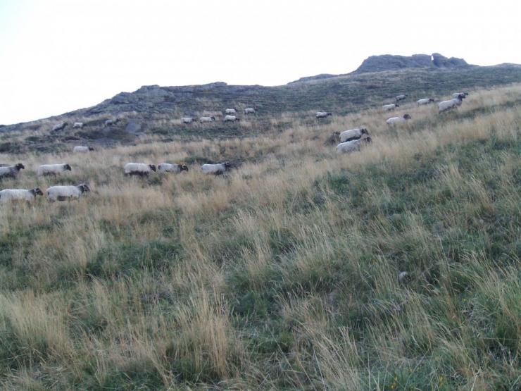 On quitte la route pour filer à l'est en suivant la crête. On contourne plusieurs mamelons et traverse sous le pic de Beloscare. Une légère remontée nous amène à un