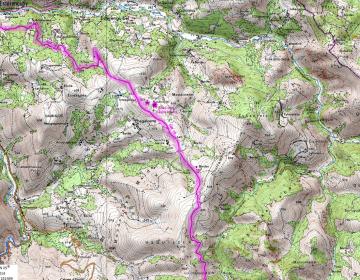 Arrivé à l'église, la laisser sur la gauche et monter au sud la ruelle. Partir à gauche à la bifurcation et monter vers l'est. On suit cette route un long moment. Attention, après un ruisseau une centaines de mètres vers le nord le GR quitte la route pour monter au sud. Il arrive rapidement à un 1er petit col puis un second, l