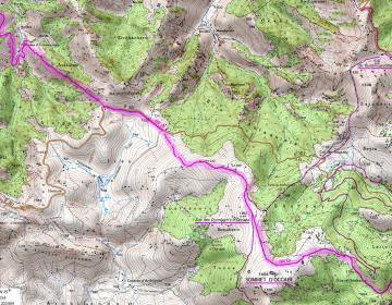 Poursuivre la route qui descend dans la vallée jusqu'au lac. Au bout du lac, le GR monte sur la droite, il pénètre dans la forêt, franchit un col 1205m puis redescend jusqu'à un petit plan d'eau. Franchir la route et continuer à l'est, la piste monte en lacets et rejoint le