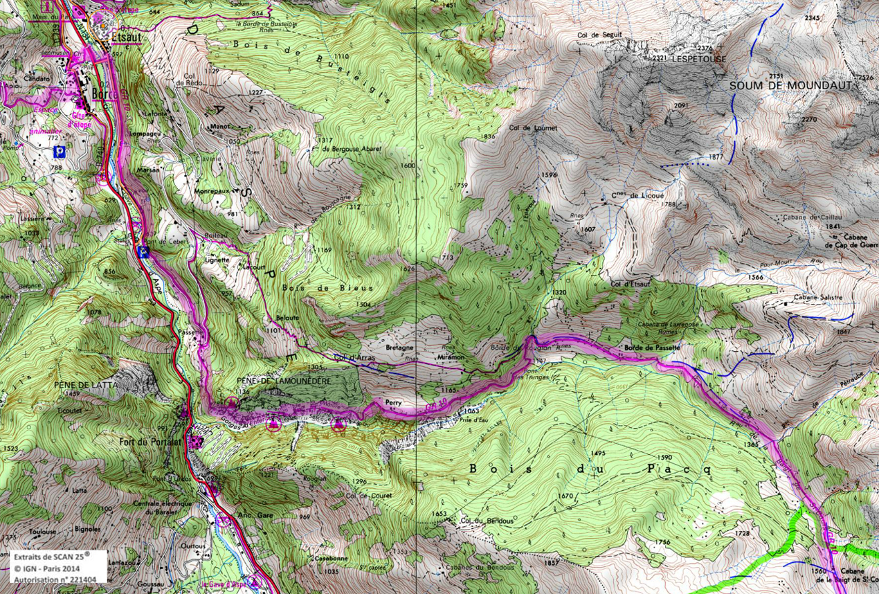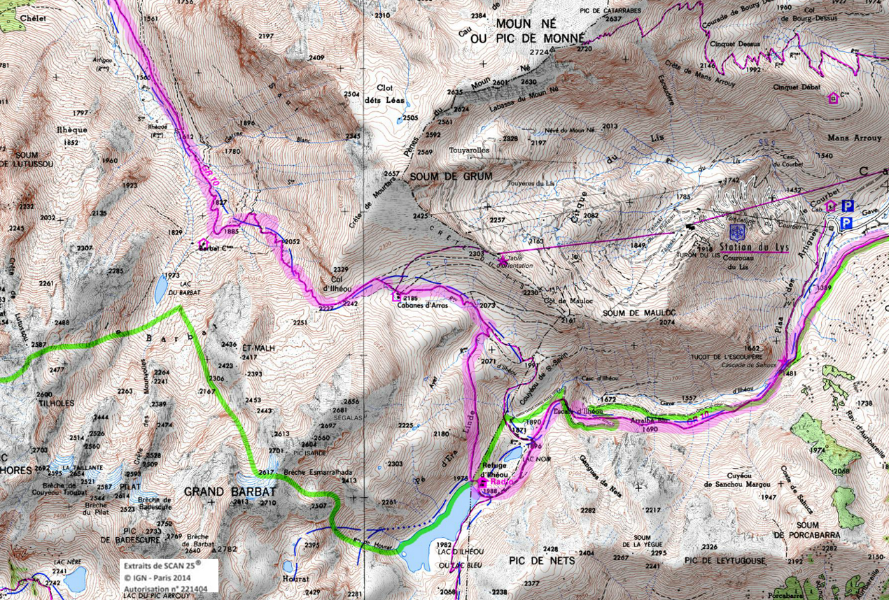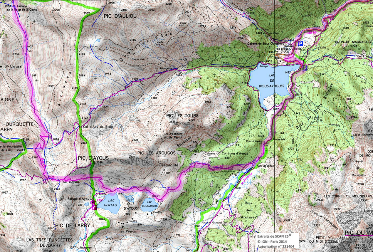 Suivre la piste puis le sentier un peu plus loin pour plonger dans la vallée d'Ilhéou. On coupe la piste plusieurs fois. On rejoint sans difficulté