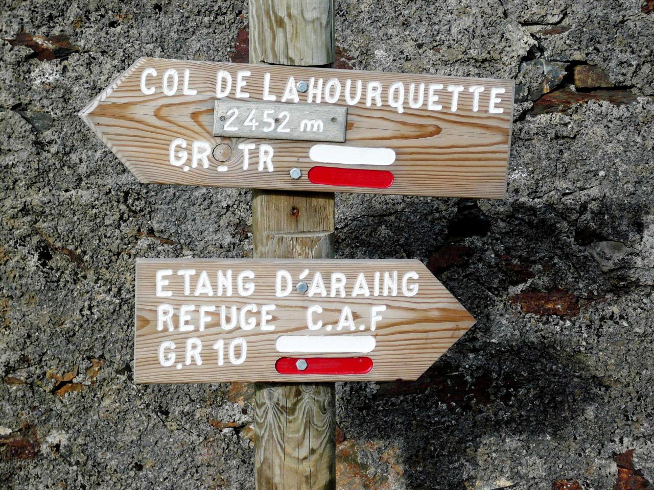Attention de ne pas partir vers le Sud Ouest (trace mieux marquée que le GR). Franchir le col direction Sud-Est pour descendre jusqu’au