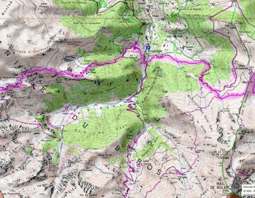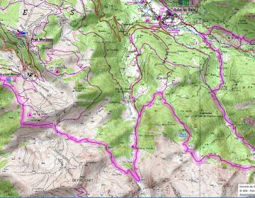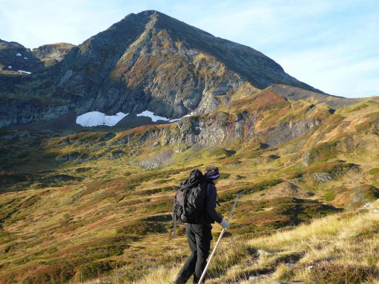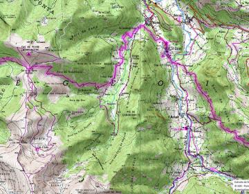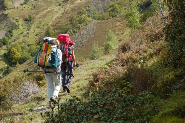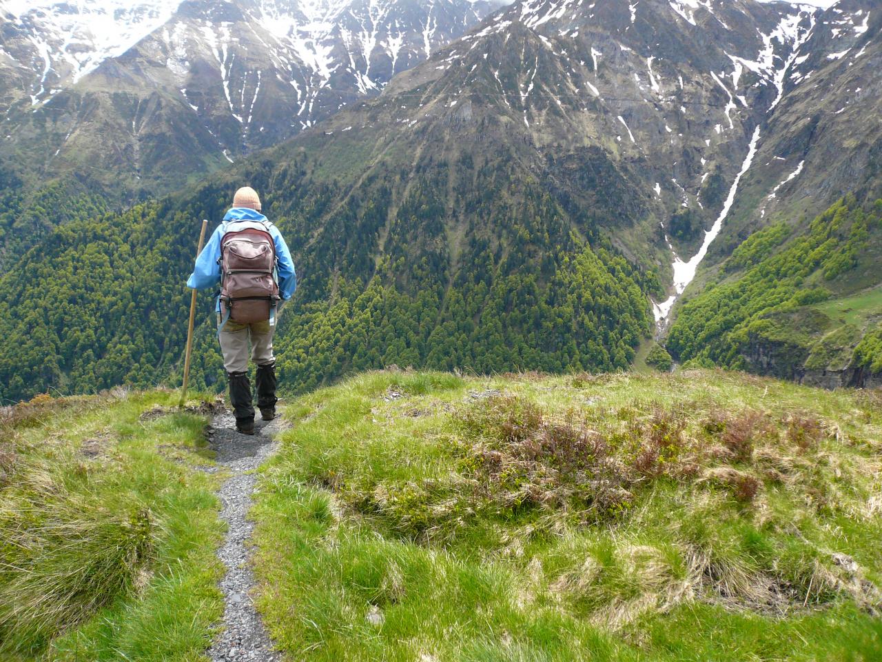 Après avoir quitté Luchon, ville thermale et haut lieu du pyrénéisme de jadis, vous ne regretterez pas le premier tronçon de l’Ariège qui vous amènera dans une nature luxuriante où le hêtre domine dès la première montée en forêt. Au delà, c’est la prairie verdoyante où le névé pentu s’accroche parfois au fond d’un couloir faisant gronder la cascade jusqu’au cœur de l’été. L’œil rivé sur le blanc et rouge du balisage sera souvent happé et détourné par les couleurs des roches ferrugineuses, du schiste ardoisier ou du granit clair. Cette richesse géologique fut exploitée dans plusieurs secteurs comme aux mines du Bentaillou ou dans la terrible falaise de la mail de Bulard et jusqu’à des altitudes invraisemblables. L’empreinte de l’homme est quasi permanente à chaque pas. Le mineur, le colporteur, le porteur de glace ont disparu laissant seul le berger dans la cabane en estives avec ses moutons. C’est le tronçon le plus sauvage de la chaîne, le Crabère et le Mont Valier y sont grandioses. Le GR n’emprunte que rarement une route qui dessert un hameau de montagne. Celui-ci, souvent peu peuplé révèle les couleurs locales et en est un joyau de l’architecture pyrénéenne. Il rend aussi la traversée plus difficile par le manque de ravitaillement mais la rend plus conviviale pour trouver un morceau de pain ou de fromage...