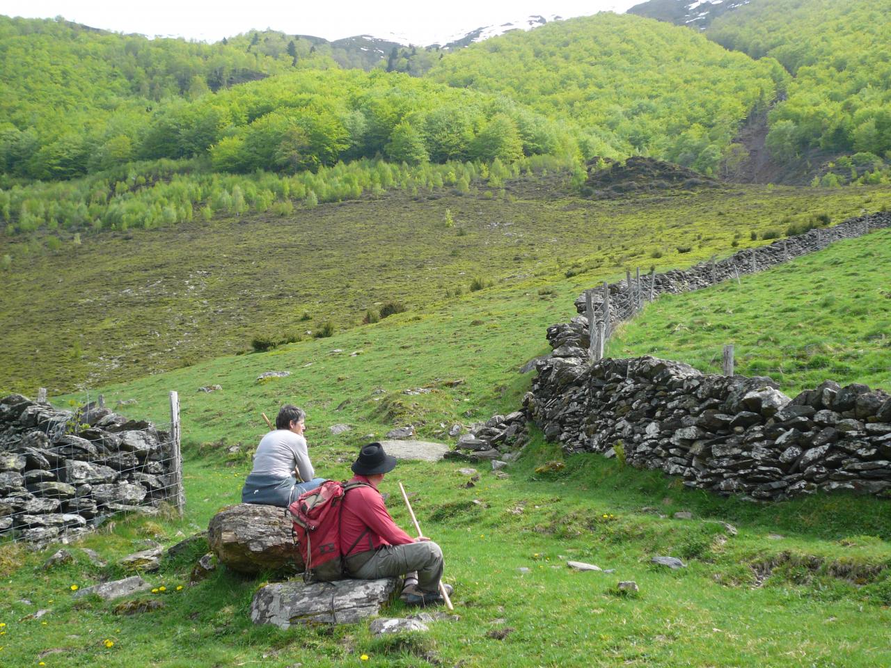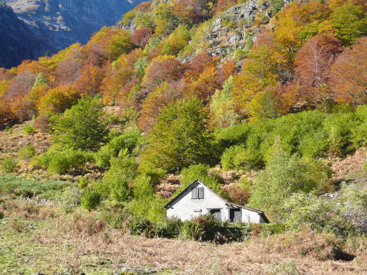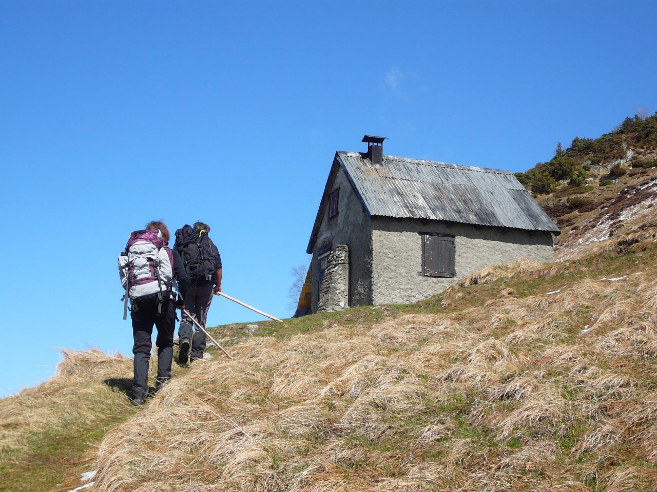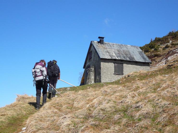 Hors GR à 100m sur la crête, il y a la cabane de Lasplanouse (abri 5 places correct sans eau). Vers l’Est, on change de vallée pour plonger rapidement en un grand lacet sur la