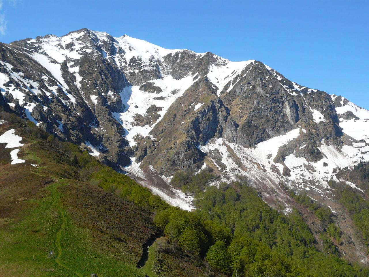 Le GR plonge sur la gauche du versant nord-est en plusieurs grands lacets jusqu'aux