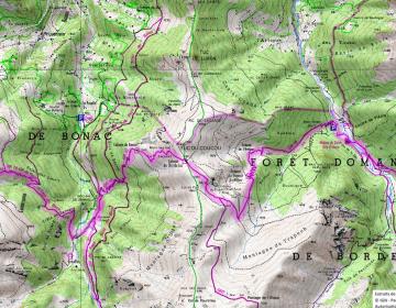 On redescend en passant près du refuge (ONF fermé) et du lac d'Aréou. On rejoint la piste qu'on emprunte sur un lacet pour plonger dans le versant jusqu'au
