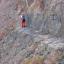 Le sentier traverse au Sud-Est (petite descente) et remonte pour rejoindre la base d’une grande falaise. La traversée austère descend et rejoint sans difficulté le