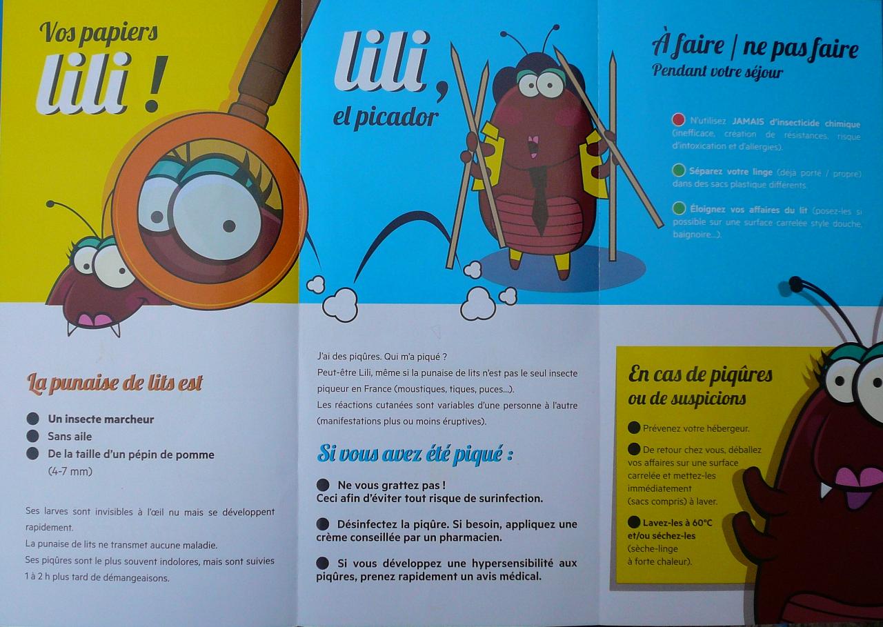 Afin de mieux lutter et de se prémunir contre le fléau des punaises de lit, les professionnels du tourisme ont décidé de communiquer auprès de leur clientèle sur les moyens de se protéger. Les gîtes d'étapes et de séjours y participent activement. Dans nos hébergments vous trouverez des informations générales sur "Lili la punaise de lit" ainsi que les moyens mis en place par chacun pour éviter la propagation (en isolant les bagages des chambres par exemple).