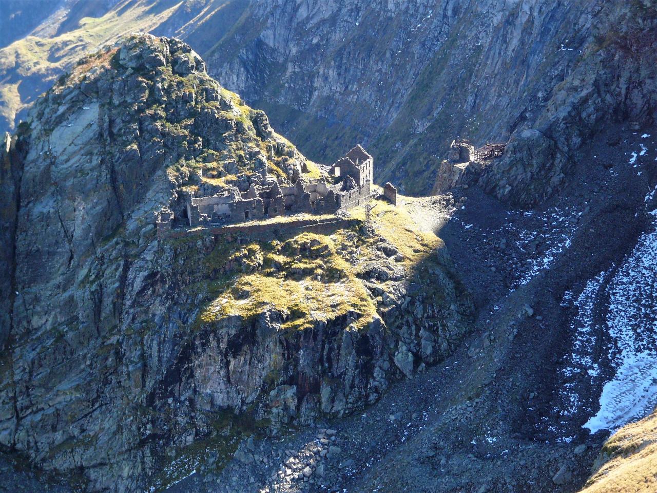Aujourd’hui, le chemin de la mine est devenu bien trop dangereux, c’est pourquoi nous recommandons la visite des baraques perchées sur le piton rocheux. La balade ne présente pas de dangers majeurs mais elle offre une vue grandiose sur la falaise ou un œil exercé pourra repérer les galeries.